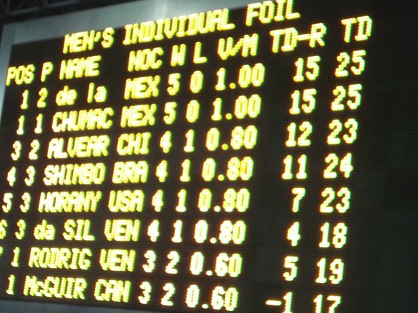 Jogos Pan-Americanos 2007. Classificação do Florete masculino após as poules.